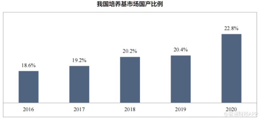 也正是因此,中国培养基市场中,国产培养基的市场份额从 2016 年的 18.6%增长至 2020 年的 22.8%,预计我国细胞培养基产品的进口依赖度预计将持续下降,也为以奥浦迈为代表的国产细胞培养基研发企业的发展提供了动力。