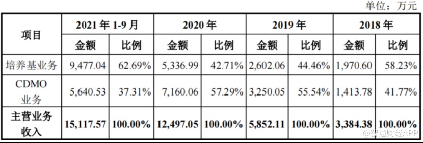 根据招股书描述,发展CDMO业务是公司盈利模式中的核心部分。采用细胞培养产品+服务的整体解决方案,一方面使用自研的无血清培养基可降低生物药 CDMO 服务的开发成本;