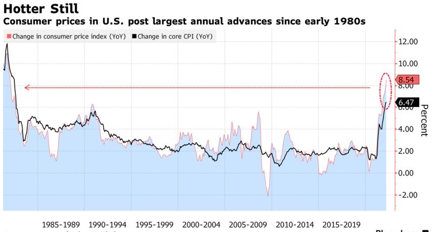经济学家们最近发现,美国经济衰退的可能性越来越大。彭博4月第一周的调查显示,有27.5%的经济学家预计美国经济将出现萎缩,高于一个月前的20%。他们预计,今年最后三个月的CPI平均为5.7%,高于此前4.5%的预期。