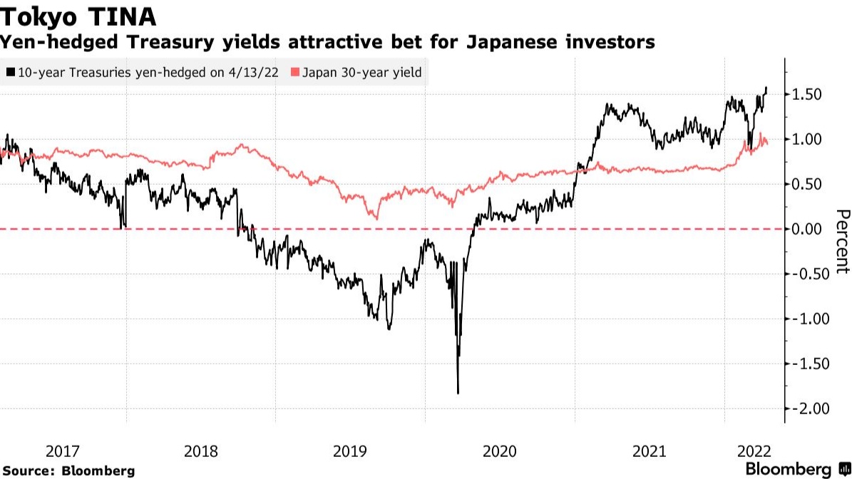 考虑到对冲成本,日本投资者目前从10年期美国国债获得的收益率接近1.6%。与此同时,日本30年期国债的收益率也低于1%。