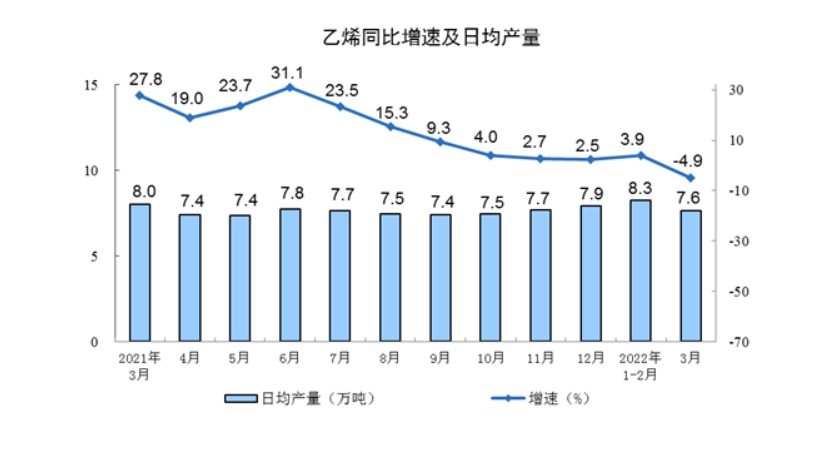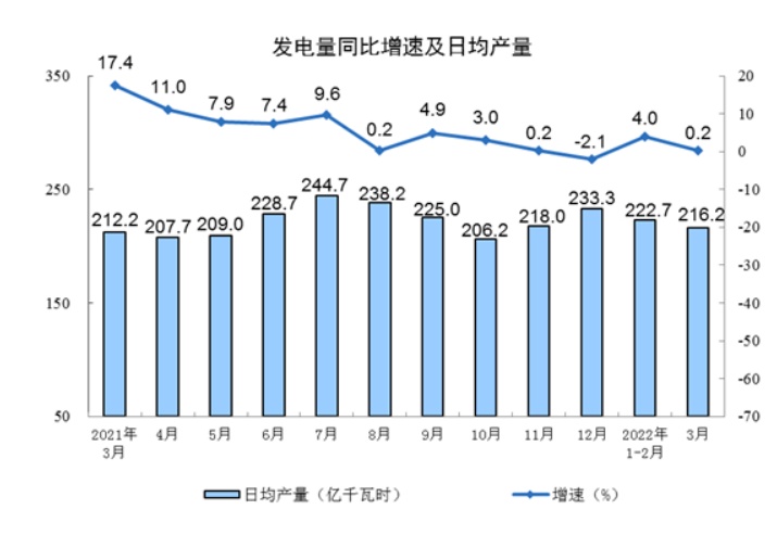 分产品看,3月份,617种产品中有304种产品产量同比增长。钢材11689万吨,同比下降3.2%;水泥18655万吨,下降5.6%;十种有色金属564万吨,增长3.1%;乙烯237万吨,下降4.9%;汽车238.7万辆,下降4.9%,其中,新能源汽车51.8万辆,增长121.4%;发电量6702亿千瓦时,增长0.2%;原油加工量5859万吨,下降2.0%。