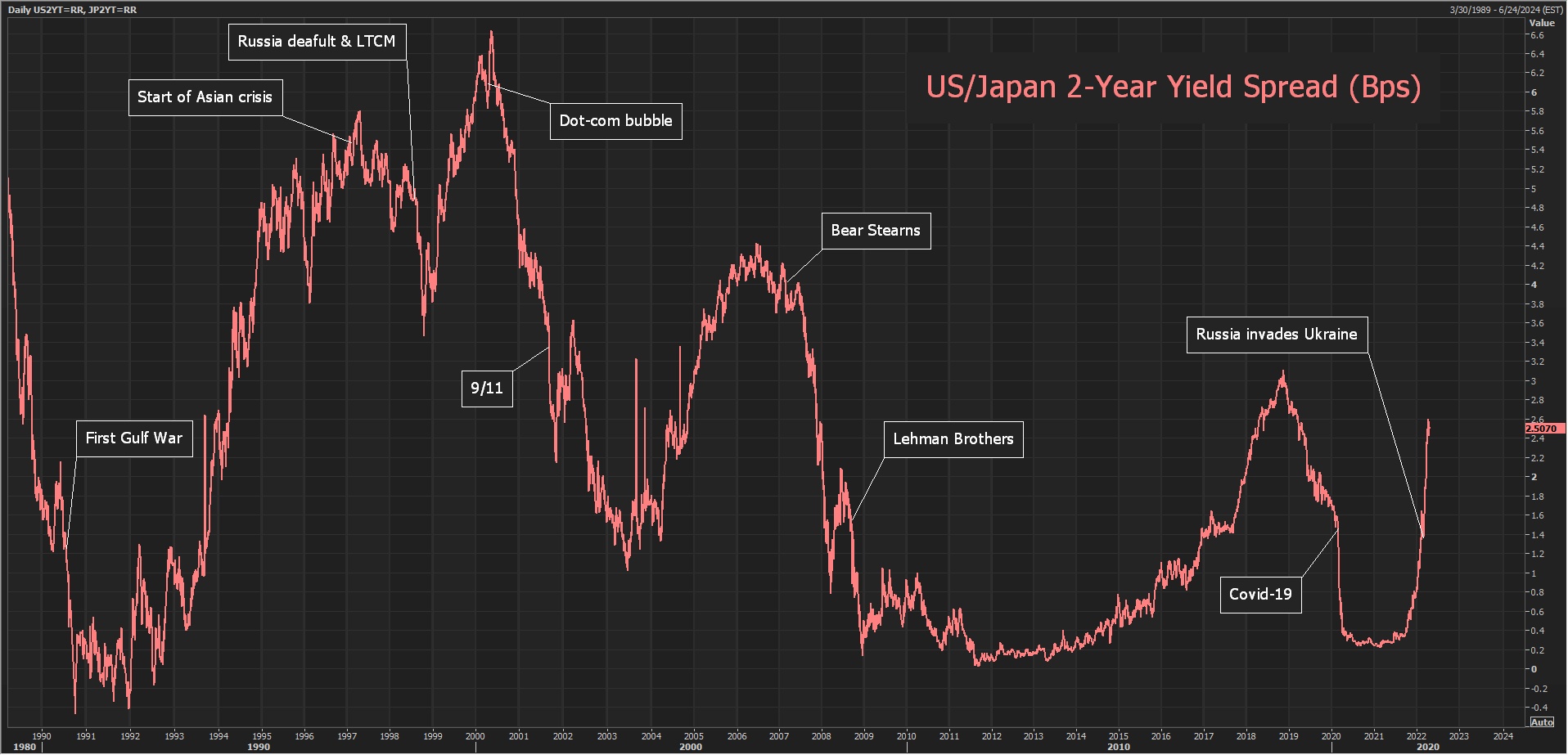 随着日本央行与美联储货币政策的背离,日元与美元的息差朝着对美元有利的方向进一步扩大,买进美元、卖出日元成为对冲基金在今年的外汇市场中做得最正确的交易之一。