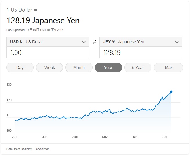 在此情况下,市场押注日元将继续走软,美元兑日元汇率或将升穿130。截至发稿,美元兑日元汇率已达到128.19,逼近130关口。
