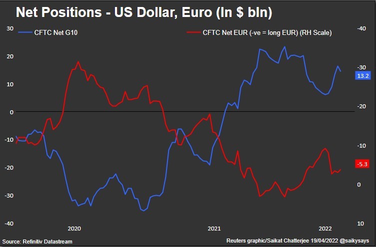 日元持续疲软带动美元指数(DXY)升至两年高位。对冲基金仍对美元持看涨态度,但对美元兑其他主要货币的立场则复杂得多。CFTC的数据显示,对冲基金连续第二周削减美元兑一系列货币的整体多头仓位,头寸规模由141.4亿美元降至132.2亿美元。