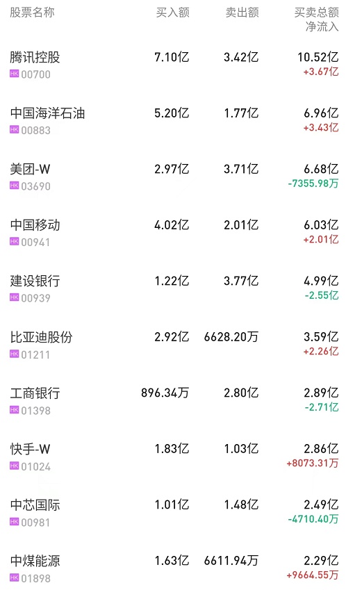 中海油(00883)获净买入5.45亿港元。消息面上,利比亚国家石油公司周一宣布,部分石油产量和出口遭遇不可抗力,将不再履行Sharara油田交付石油的合同义务。该公司同时警告称,未来将出现一波停产浪潮。花旗发此前布研报称,在油价上涨的环境下,中海油是“三桶油”中的主要受益者。
