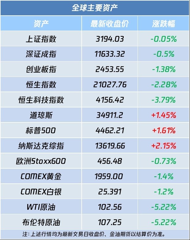 一图速览全球主要资产涨跌情况: