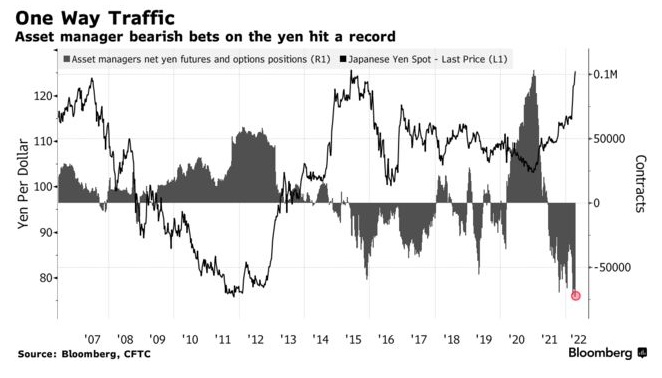 目前,抛售日元已成为热门交易,资产管理公司的空头仓位也创下了纪录,原因是持鸽派立场的日本央行维持政策利率在低位,而美联储则准备再次加息。根据美国商品期货交易委员会的数据显示,资产管理公司上周将看跌赌注推高至创纪录水平,而杠杆基金净空头仓位仅略低于三年多来的最高水平。