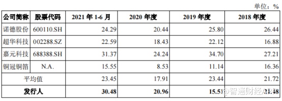 2018-2020年,公司经营活动产生的现金流量净额为负,分别为-10,333.83万元、-25,766.75万元和-7,159.56万元,2021年1-6月为874.57万元。在4家同行业可比公司中处于“垫底”水平,唯有安徽铜冠在2020年现金流同样为负。