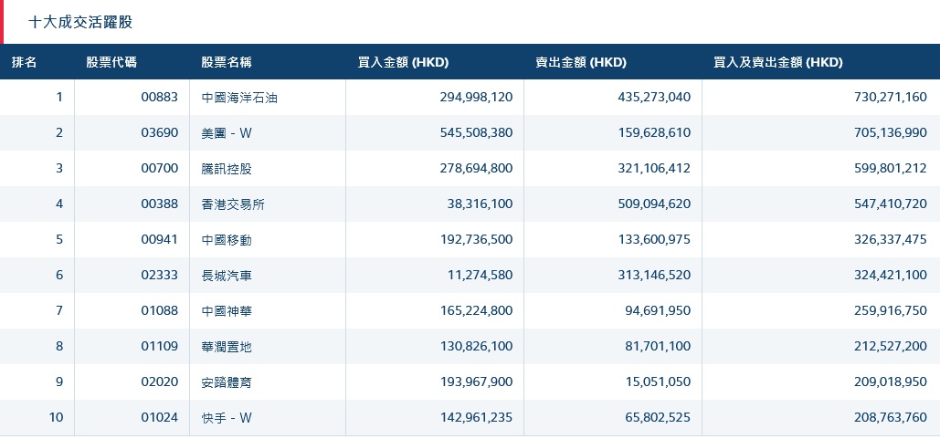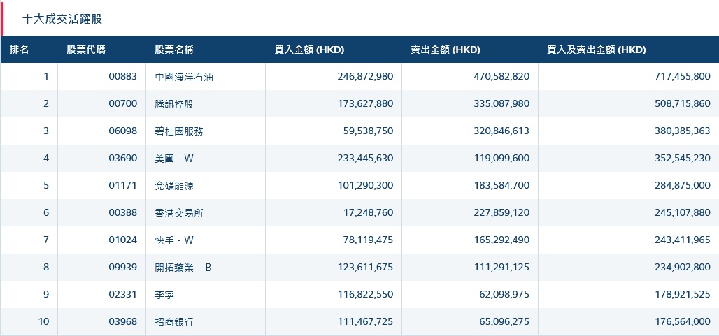 中海油(00883)遭净卖出3.63亿港元。消息面上,国际货币基金组织周二披露了最新的季度全球经济展望,将2022和2023年全球经济增速预期分别从4.4%和3.8%均下调至3.6%。而美元汇率持续走高,及全球需求面临新冠反复威胁,令国际油价重挫。此外,中国海油此前披露发行结果,网上投资者放弃认购金额2.42亿元,网下投资者放弃认购金额59.6万元。