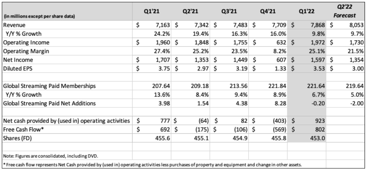 而投资者最关注的全球净增付费用户这一指标则意外出现负增长。第一季度全球付费用户流失20万,是2011年以来首次出现负值,而奈飞此前的预期为新增250万。此外,奈飞给出的第二季度指引也令人失望,该公司预计第二季度全球付费用户将减少200万,而市场预计的则是新增240万。