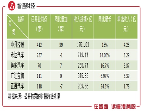 从收入体量看,中升控股和永达汽车为行业的第一梯队,美东、和谐、广汇及正通体量差不多,为第二梯队。在业务运营模式上,第一梯队和第二梯队并无本质差别,主要差异在于品牌经营策略。