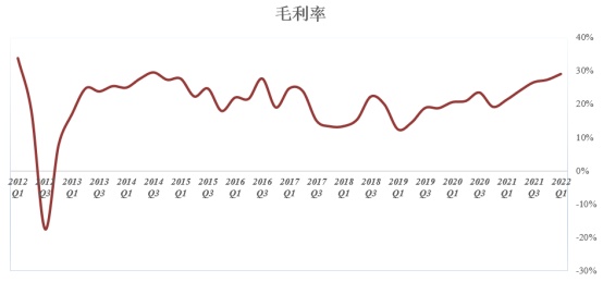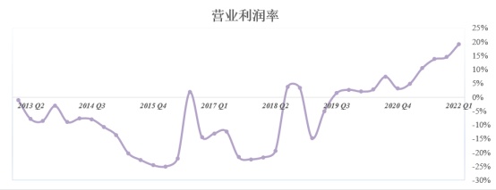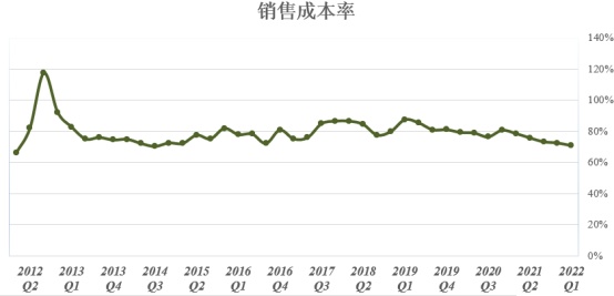 从销售成本率走势图能看出特斯拉近几年在成本端下足了功夫,坚持花较少的支出创造最大的价值,近几年努力将该指标控制在70%-80%区间。特斯拉第一季度销售成本率约为70%,低于上季度以及去年同期,创近几年来新低。在第一季度原材料暴涨以及供应链受阻的背景之下,在控制成本方面,特斯拉交出了一份令市场满意的答卷。
