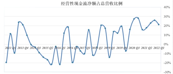 对于特斯拉这样的重资产造车企业来说,20%+比例的经营现金流属于非常优秀的水平。这一比例越高,意味着企业有更多资金用于研发等支出,进而不断提高自身竞争力。