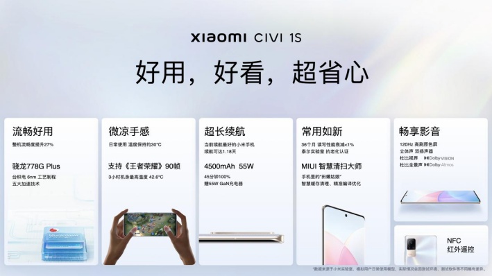 36个月抗老化认证久用如新,小米Civi 1S续航表现再突破