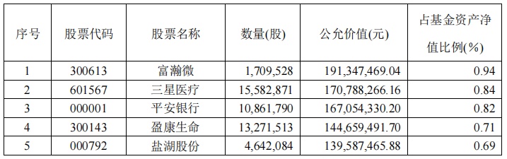 公告显示,一季度末,华安安康前十大重仓股分别为:富瀚微(300613.SZ)、三星医疗(601567.SH)、平安银行(000001.SZ)、盈康生命(300143.SZ)、盐湖股份(000792.SZ)、浪潮信息(000977.SZ)、航发动力(600893.SH)、海尔智家(600690.SH)、伊利股份(600887.SH)、中信证券(600030.SH)。