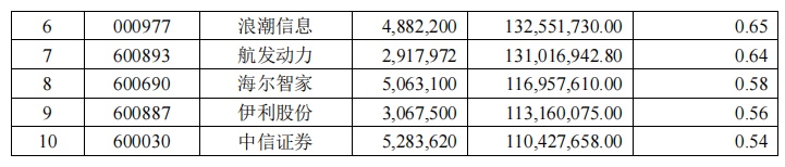 与2021年四季度相比,兴业证券(601377.SH)、海澜之家(600398.SH)、西菱动力(300733.SZ)、兴业银行(601166.SH)等退出前十大重仓股,平安银行、盐湖股份、航发动力、中信证券新晋前十大重仓股。