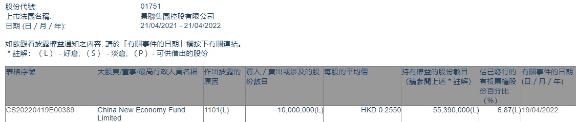 智通财经APP获悉,香港联交所最新资料显示,4月19日,China New Economy Fund