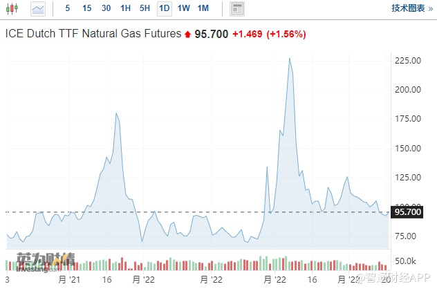 截至发稿,基准荷兰天然气期货价格上涨1.56%,至每兆瓦时95.70欧元。