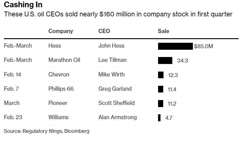 这些美国石油公司CEO们在第一季度抛售近1.6亿美元公司股票