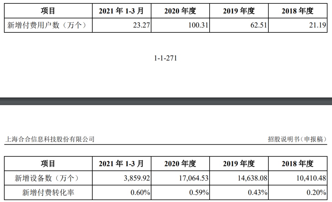 为什么C端业务能爆发式增长?这是解析合合信息业绩的关键。据招股书显示,从2018至2020年,合合信息C端三款APP产品的用户数据均有亮眼表现。其中,扫描全能王APP新增设备数、新增付费用户、以及付费转化率均呈明显的上升趋势。