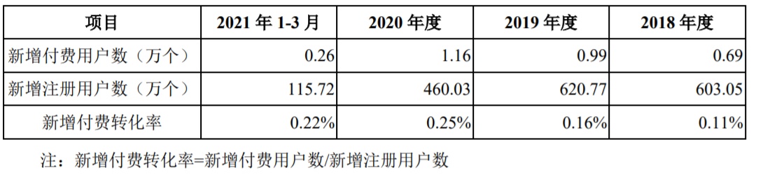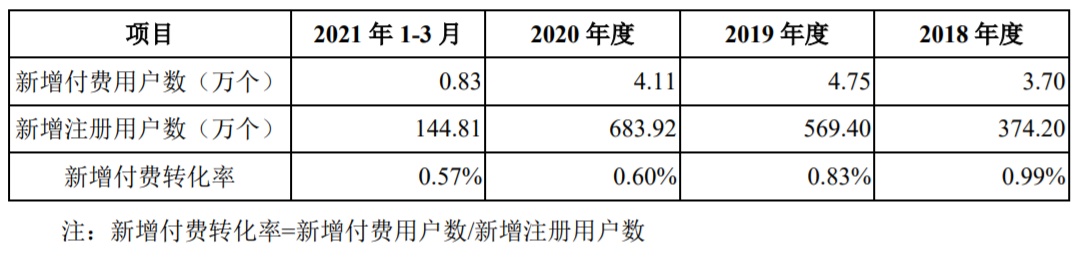 在名片全能王APP中,新增注册用户数虽在2020年有所下滑,但得益于付费转化率的提升,该APP在2018至2020年的新增付费用户数持续提升,分别为0.69万、0.99万、1.16万。