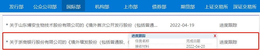 证监会:浙商银行(02016)境外增发股份申请已获接收材料
