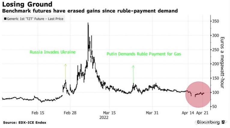 欧洲天然气价格曾短暂上涨,当时普京称,如果不能满足支付卢布的要求,俄罗斯可能会停止向欧洲运输天然气。然而,欧洲天然气价格很快回落,有以下四个原因。