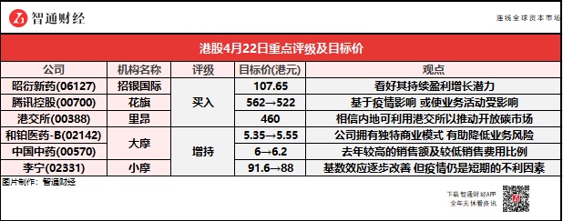 小摩称,考虑到李宁(02331)在持续的疫情下销售和利润率减弱,下调2022-24年盈利预测4%至5%,目标价由91.6港元下调至88港元。公司首季销售增长基本符合该行预期。踏入4月,该行认为基数效应应该逐步改善,但疫情仍然是一个短期的不利因素。