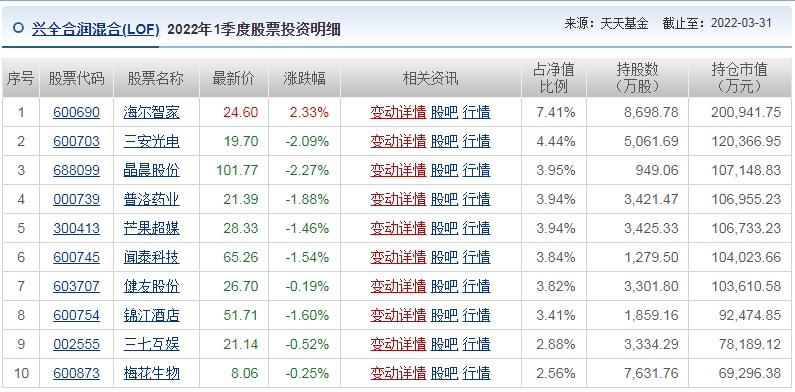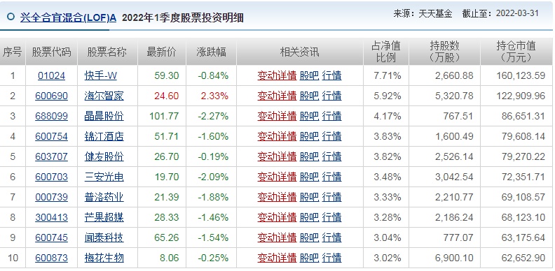 相较于上季度,海康威视(002415.SZ)、万华化学(600309.SH)被调出前十大重仓股,三七互娱(002555.SZ)和梅花生物(600873.SH)获增持新晋前十。海尔智家(600690.SH)、三安光电(600703.SH)、晶晨股份(688099.SH)、普洛药业(000739.SZ)、芒果超媒(300413.SZ)、健友股份(603707.SH)均获增持。闻泰科技(600745.SH)、锦江酒店(600754.SH)遭小幅减持。