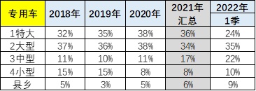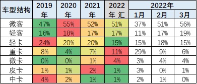 专用车结构仍是以微客为主,轻卡、轻轻客等为辅,轻卡与轻客比例相近。