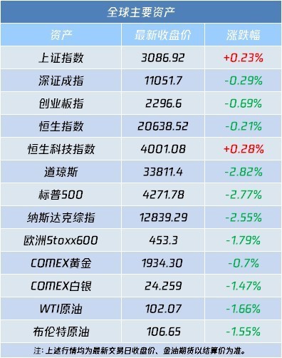 美股方面,上周五三大指数集体收跌,道指跌2.82%,本周累跌1.86%;标普500指数跌2.77%,本周累跌2.75%;纳指跌2.55%,本周累跌3.83%。能源、金属、油气跌幅居前,美国钢铁跌超3%,南方铜业跌近3%,康菲石油跌超2%。大型科技股普跌,谷歌跌超4%,英伟达跌超3%,苹果、微软、亚马逊跌超2%。热门中概股涨跌不一,雾芯科技涨超7%,京东涨超2%,爱奇艺、虎牙涨超1%,知乎跌超6%,百度跌超1%。