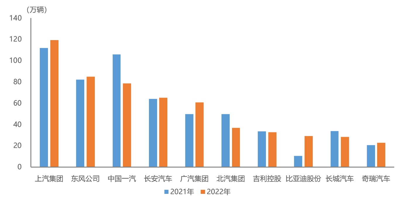 智通财经APP获悉,据中国汽车工业协会统计分析,2022年一季度,汽车销量排名前十位的企业(集团)共销售558.6万辆,占汽车销售总量的85.8%。在汽车销量排名前十位企业中,与上年同期相比,比亚迪(01211,002594.SZ)销量增速依然最为明显,广汽(02238,601238.SH)和奇瑞也呈较快增长,上汽(600104.SH)、东风(600006.SH)和长安(000625.SZ)增速略低,其他企业有所下降。
