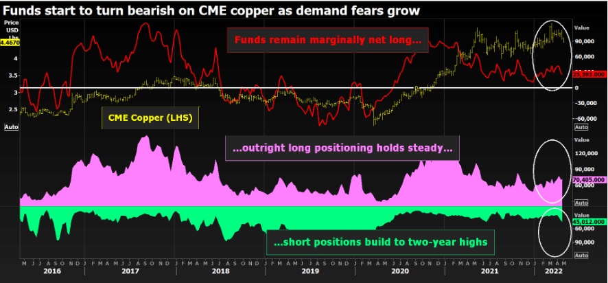 在对需求端的担忧下,基金经理开始看跌芝交所上的期铜价格