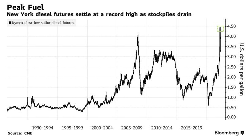 随着库存减少,纽约柴油期货价格创下历史新高