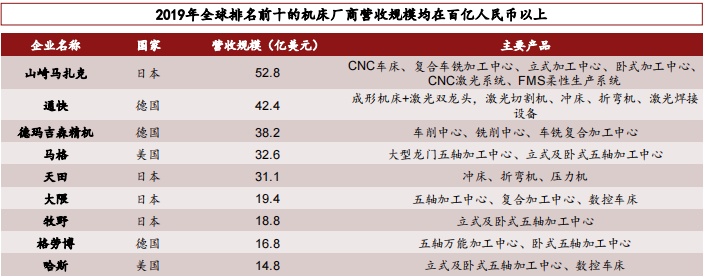 其次,就龙头企业的发展状况来看,对照日本、美国、德国等发达国家,上述国家中均产生了数家年营收在百亿元以上的世界级机床厂商,而规模达数千亿的中国的机床业却迟迟未能孕育出真正的龙头型机床企业。但诚如前文所述,当前中国机床业的竞争格局已大为优化,同时机床的数控化率加速提升,在此背景下,未来行业中亦有望涌现出若干家营收达到百亿元以上的世界级机床厂家。