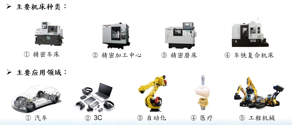 结合公司最新的财报数据来看,精密车床为公司的支柱性业务,收入占比约为87.8%。精密加工中心的收入占比为5.1%,其余为精密磨床、精密滚丝机等。