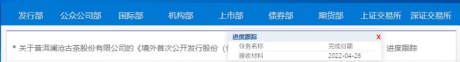 证监会:普洱澜沧古茶股份有限公司境外首次公开发行股份申请已获接收材料