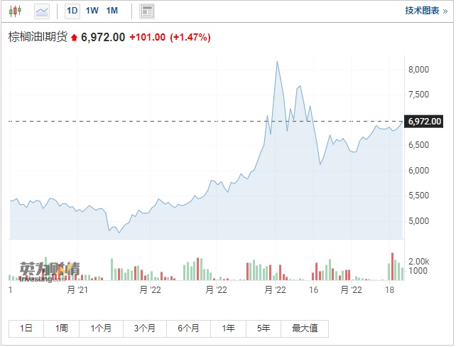 消息公布后,基准棕榈油期货周三延续涨势,截至发稿,马来西亚吉隆坡7月交割的棕榈油期货涨1.47%,至6972林吉特/吨。