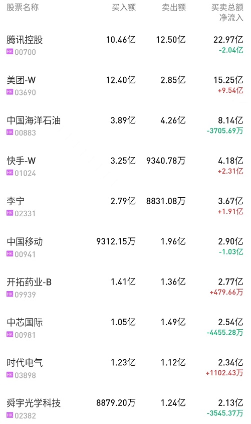 港股通(深)十大活跃成交股