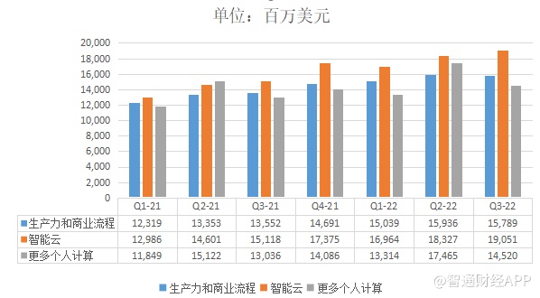 在Azure的增速推动下,微软智能云业务第三财季营收191亿美元,同比增长26%,超越市场预期189亿。