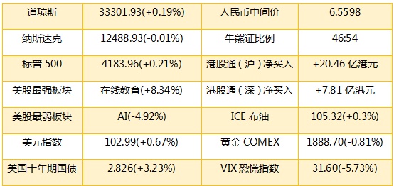 1.隔夜美股截至收盘,道指涨0.19%,标普500指数涨0.21%,纳指跌0.01%,热门中概股多数上涨,哔哩哔哩(BILI.US)涨超8%,京东(JD.US)、拼多多(PDD.US)涨超7%。港股ADR指数上涨,按比例计算,收报20009点,较香港收市涨62.50点或0.31%。