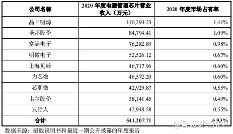 根据中商产业研究院的数据,2020年国内电源管理芯片市场规模为781亿元,据此测算,必易微2020年在中国电源管理芯片市场占有率为0.55%,与芯朋微(688508.SH)相当;在LED照明领域,必易微2020年市场占有率为17.17%。