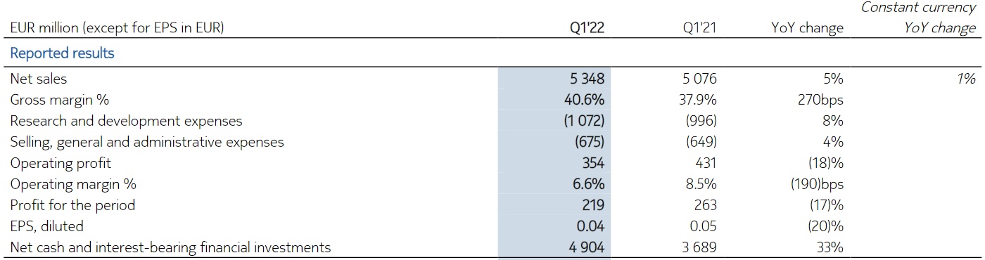智通财经APP获悉,4月28日(周四)盘前,诺基亚(NOK.US)公布了2022年第一季度财务业绩。