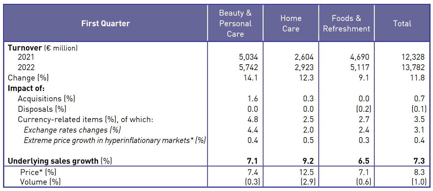 按业务划分,美容及个人护理业务营收为57亿欧元,基本销售额同比增长7.1%;家庭护理业务营收为30亿欧元,基本销售额同比增长9.2%;食品和点心业务营收为51亿欧元,基本销售额同比增长6.5%。