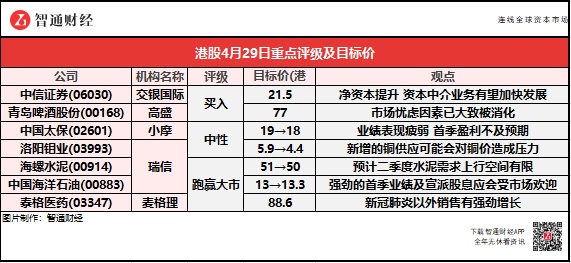 瑞信将洛阳钼业(03993)2022年/23年的盈测提高44%/38%,以反映更高的利润率假设。该行认为大部分的利好因素都已反映,新增的铜供应可能会对铜价造成压力。此外,在金属价格上涨推动下,公司首季纯利同比增长79%至18亿元人民币。
