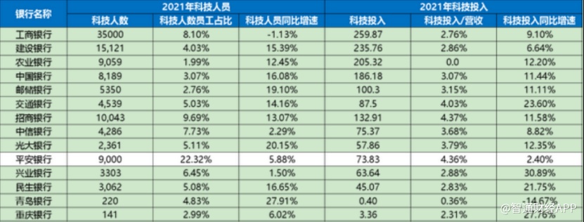 从发展空间来看,随着金融机构对科技赋能和数字化创新的日益重视,金融科技投入不断增加。根据各银行公布的财报数据,2021年6家国有大行在科技方面的投入规模合计超过千亿元,多家上市银行的金融科技投入增幅超过10%。