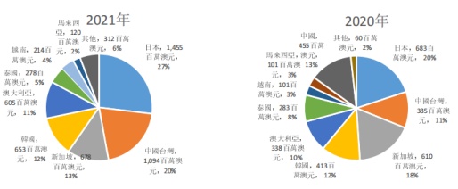 据公司2021年报披露,兖煤澳大利亚的客户遍及亚太地区,2021年公司来自日本、中国台湾、韩国及新加坡客户的受益约占公司煤炭销售收益的73%。