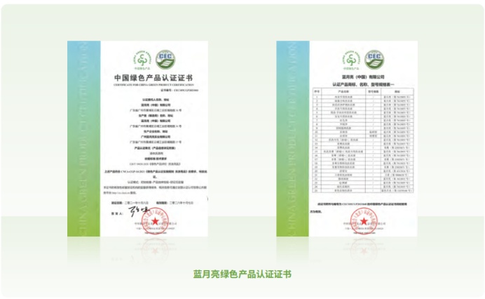 ESG报告显示,目前蓝月亮90%以上的产品通过了中国环境标志认证,主要洗衣液类产品均通过了中国节水产品认证。2021年,蓝月亮还获得行业首批中国绿色产品认证。