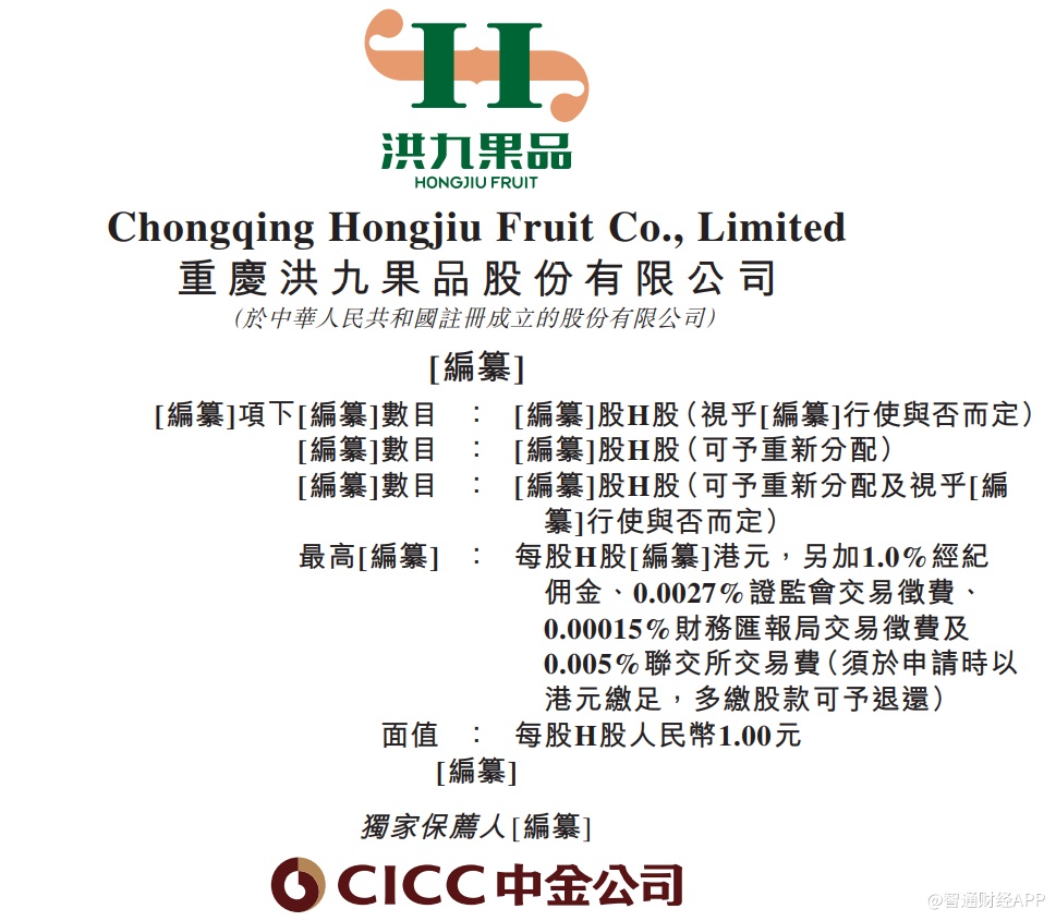 智通财经APP获悉,据港交所4月29日披露,重庆洪九果品股份有限公司向港交所主板提交上市申请,中金公司为独家保荐人。
