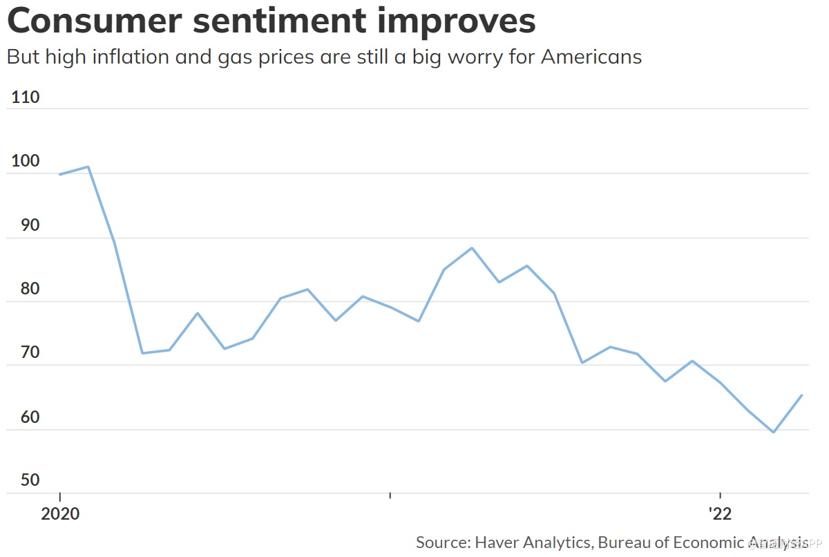 牛津经济研究院的美国经济学家Mahir Rasheed表示:“市场情绪仍然低迷,在价格压力消退之前,将很难出现有意义的信心复苏。虽然我们很谨慎地对月度数据进行解读,但通胀压力见顶可能会支持未来几个月市场情绪的逐步反弹。”